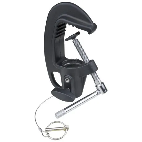 Зажим KUPO KCP-100B T.V. CLAMP BLACK - это прочный литой C-образный зажим, предназначенный для надежного подвешивания осветительных приборов в телестудиях и театрах. Зажим оснащен приемным гнездом Junior 1-1/8 (28мм) для надежного крепления осветительных приборов. Зажим устанавливается на трубы диаметром от 22 до 54 мм и имеет грузоподъемность до 250 кг. Зубцы на крюке зажима препятствуют смещению крепежа. Поджимной винт оснащен рычажным шарнирным воротком для удобного захвата с требуемым усилием. Для дополнительной безопасности на зажиме имеется предохранительный стержень с кольцом на тросике, который устанавливается в штифт прибора и защищает его от случайного выскальзывания. Зажим KCP-100B T.V. Clamp - отличное решение для надежного и безопасного крепления осветительных приборов в профессиональных условиях эксплуатации.