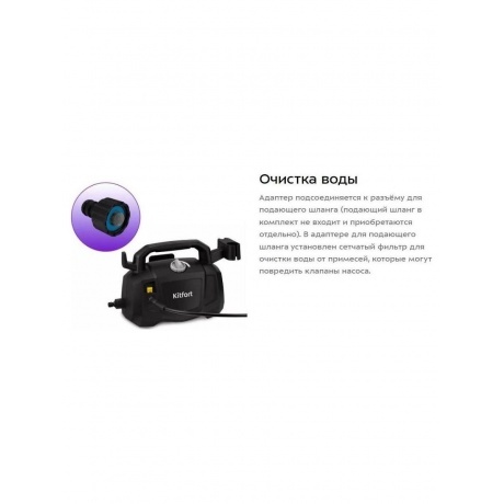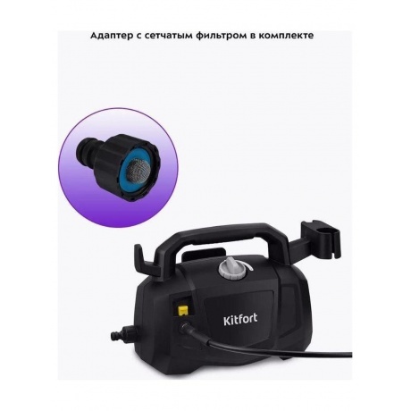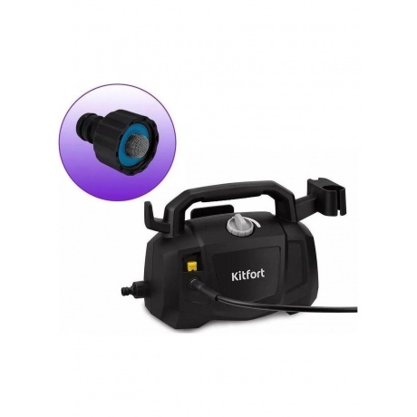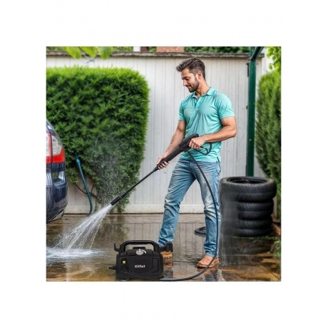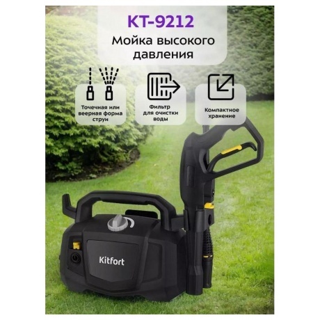 Мойка высокого давления KT-9212 предназначена для мытья автомобилей, садовых принадлежностей, фасадов, террас, плитки, кирпичной кладки и иных влагостойких поверхностей с помощью струи воды под высоким давлением. С КТ-9212 у загрязнений нет шансов! К прибору крепится насадка с регулируемым соплом, которая позволяет выбрать точечную или веерную форму струи. Точечная струя используется для очистки стойких локальных загрязнений. Веерная струя оптимальна для обработки крупных поверхностей. Адаптер подсоединяется к разъёму для подающего шланга (подающий шланг в комплект не входит и приобретаются отдельно). В адаптере для подающего шланга установлен сетчатый фильтр для очистки воды от примесей, которые могут повредить клапаны насоса. Переключатель служит для включения и выключения прибора. Для включения устройства поверните переключатель по часовой стрелке до упора, для выключения — против часовой стрелки до упора. Чтобы включить подачу воды, нажмите и удерживайте курок на моющем пистолете. Вода подаётся, пока вы удерживаете его. Система полной остановки выключает двигатель при отпускании курка подачи воды, что экономит энергию и увеличивает cрок службы помпы. На корпусе есть ручка для переноски устройства. Для удобства хранения на корпусе предусмотрен держатель насадок и моющего пистолета, а также держатели высоконапорного шланга и шнура питания. Чтобы предотвратить случайное нажатие на курок подачи воды, на моющем пистолете предусмотрен блокиратор. Для блокировки курка подачи воды опустите блокиратор до упора. Чтобы разблокировать курок подачи воды, поднимите блокиратор в сторону курка.