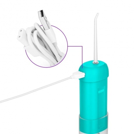 Управление устройством осуществляется всего одной кнопкой. У ирригатора 4 режима работы – «Норма», «Мягко1», «Мягко2» и «Пульс». Если вы до этого не пользовались ирригатором, то начинайте с режима «Мягко», чтобы дёсны привыкли к устройству и окрепли. В комплекте к ирригатору идут 2 струйные насадки. Насадка является индивидуальным аксессуаром для каждого члена семьи. Чтобы извлечь насадку, необходимо нажать на кнопку снятия насадки, а затем потянуть насадку вверх. Ёмкость резервуара для воды составляет 120 мл. Этого количества достаточно, чтобы обработать все труднодоступные участки во рту. Чтобы наполнить резервуар, необходимо всего лишь открыть крышку резервуара и налить в него воду или специальный раствор. Модель КТ-2988 является портативным ирригатором: его можно брать с собой в путешествия или на работу. В комплекте идёт шнур USB, заряжать устройство можно от сети, компьютера или пауэрбанка. Время полной зарядки составляет около 4 часов.
