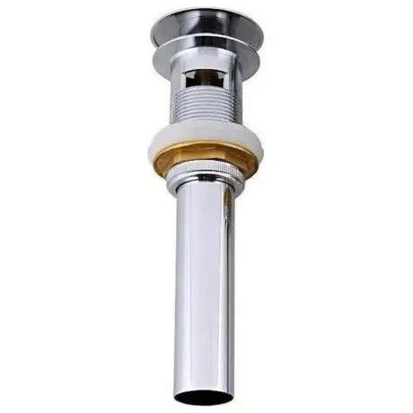 Донный клапан Haiba HB65-2. Данная модель имеет удлиненный металлический корпус. Крышка хромированная, выполнена из нержавеющей стали. Силиконовые прокладки обеспечивают плотное прилегание донного клапана к посадочному месту раковины. Имеет перелив.