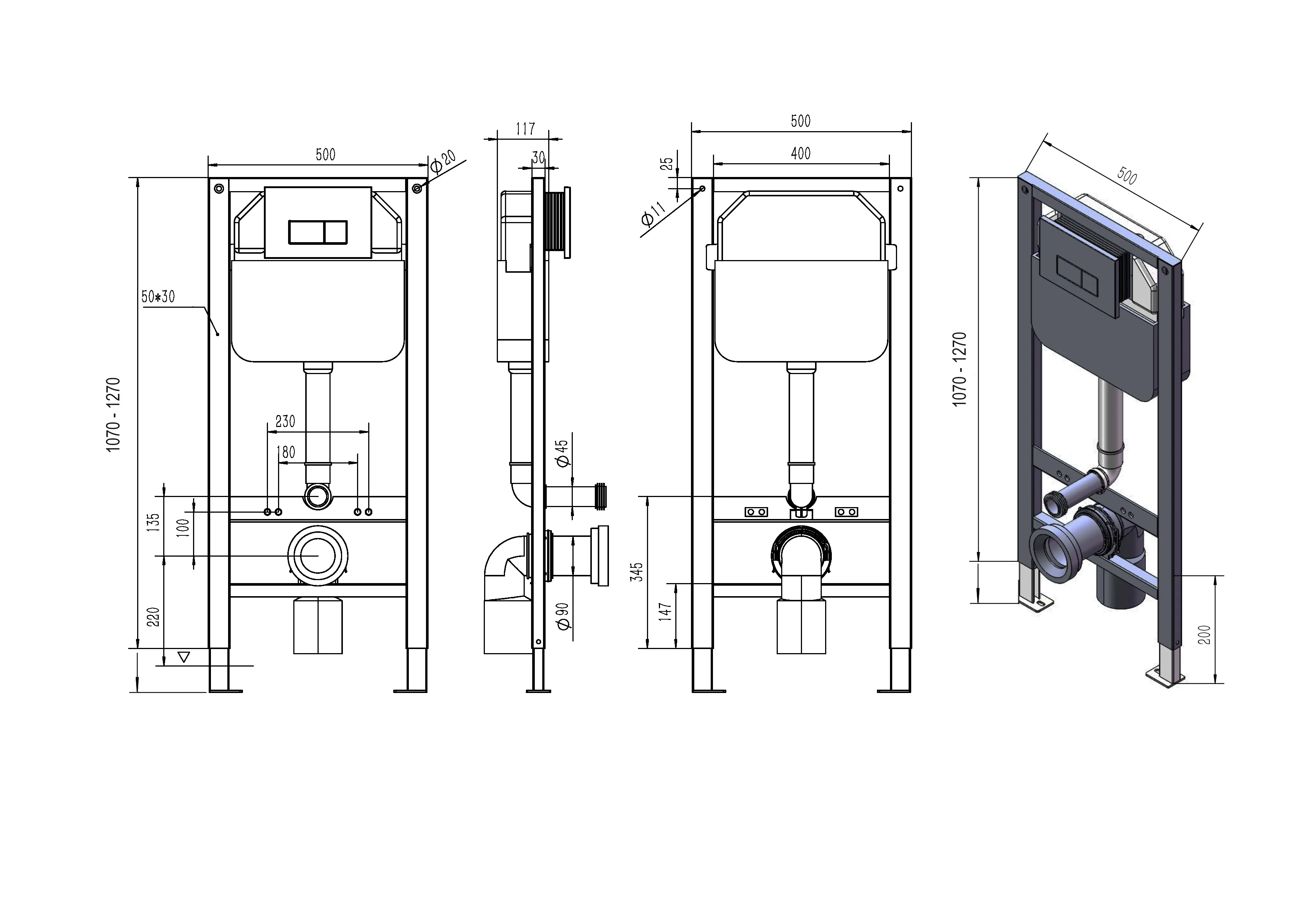 Описание товара Инсталляция рамная скрытого монтажа D&K 500*117*1270мм (DI8050127)