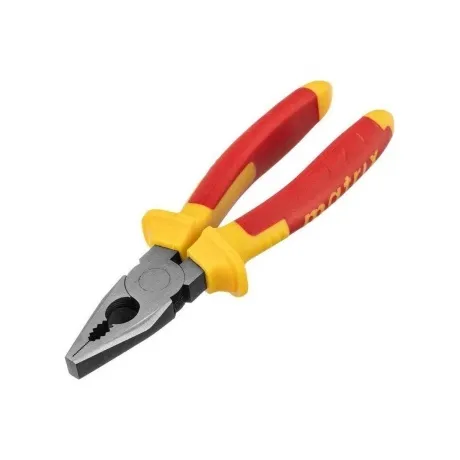 Предназначен для электромонтажных работ до 1000 В. Щарнирно-губцевый инструмент изготовлен из хромованадиевой стали. Износостойкие губки твердостью 42-50 HRС имеют зоны захвата для плоских и круглых деталей. Режущие кромки закалены токами высокой частоты до твердости 55-62 HRC, что позволяет работать с различными видами проволоки. Отвертки изготовлены из хромомолибденовой стали. Наконечники намогничены. Двухкомпонентные эргономичные рукоятки обеспечивают комфорт при работе и препятствуют выскальзыванию инструмента из рук.