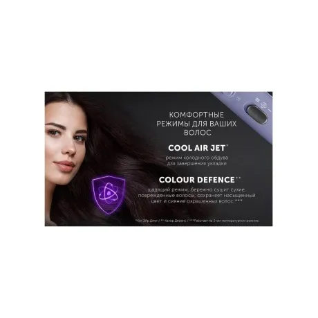 Современный компактный фен с 2 магнитными насадками - узкий и стандартный концентраторы. Встроенный генератор ионов QUATTRO Ionic создает 4D эффект здоровых волос - работает как антистатик, увлажняет, сохраняет яркость цвета, предотвращает сечение на кончиках. Отрицательно заряженные ионы смягчают воздействие горячего воздуха и снижают вред регулярных укладок. Фен с генератором ионов бережно защищает волосы от обезвоживания и пересушивания в 4 раза лучше по сравнению с фенами с турмалиновой ионизацией. Режим Colour Defence - щадящий режим сушки бережно сушит сухие, поврежденные волосы, сохраняет насыщенный цвет и сияние окрашенных волос. Узкая магнитная насадка-концентратор для выпрямления волос и стайлинга отдельных прядей. Стандартный магнитный концентратор для сушки мокрых волос. Оба концентратора оснащены технологией DuoProtect - атермальная защита с двойными стенками для саморегуляции температуры поверхности.