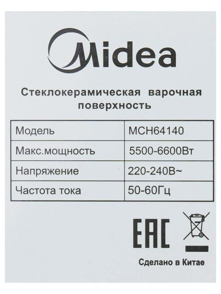 Отзывы о товаре Электрическая варочная панель Midea MCH64140, 60 см, HiLight