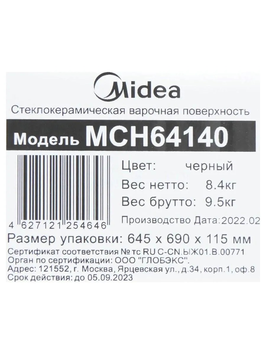 Описание товара Электрическая варочная панель Midea MCH64140, 60 см, HiLight