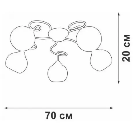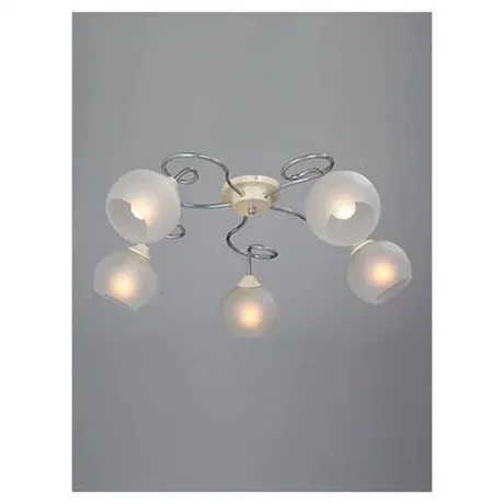 потолочная люстра vitaluce v3820-9/5pl с пятью плафонами и хромированным основанием. рассчитана на лампы e27 мощностью до 60вт каждая, общая мощность — 300вт. металлический каркас и стеклянные плафоны обеспечивают долговечность и равномерное освещение. подходит для помещений площадью до 15м?. напряжение питания — 220в. диаметр конструкции — 70см, высота — 20см. сочетает функциональность и современный дизайн.