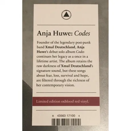Сольный дебют несравненной фронтвумен Xmal Deutschland Ани Хуве будет выпущен параллельно с переизданием Xmal Deutschland. По приглашению своей давней подруги Моны Мюр, Хуве пересмотрела свой десятилетний перерыв в музыке. В течение полутора лет они вместе работали в Берлине, сочиняя, исполняя и продюсируя с нуля треки, которые в итоге вошли в альбом Codes. Важной частью общего звучания стал вклад Мануэлы Рикерс, которая добавила свой знаменитый гитарный стиль. Вдохновленный дневниковыми записями Моше Шницки, который покинул родину в 1942 году в возрасте 17 лет, чтобы жить партизаном в пещерных белорусских лесах, Codes рассказывает о человеческом опыте и о том, что экстремальные ситуации могут сделать с человеком. В результате получился поэтический, музыкальный космос, который охватывает следующие темы: Лес, страх, боль, потеря, насилие и одиночество, а также красота, тоска, надежда и стремление выжить, - объясняет Хуве. При элегантном продюсировании Mur и Huwe и микшировании и мастеринге Jon Caffery (Joy Division, Gary Numan, Einst?rzende Neubauten), эпические построения рушатся и распространяются, плавные синтезаторные дроны звука даже чувствуют клаустрофобию временами. Xmal Deutschland, которые сегодня считаются пионерами пост-панка, в 1980-е годы никогда не были самодовольными, но всегда задорно атаковали. Возвращение Huwe ничем не отличается от этого. Неожиданный, но давно ожидаемый, Codes - это как недостающая страница в учебниках истории пост-панка, свежая краска на холсте десятилетней давности - продукт неутомимого стремления выжить на своих собственных условиях.