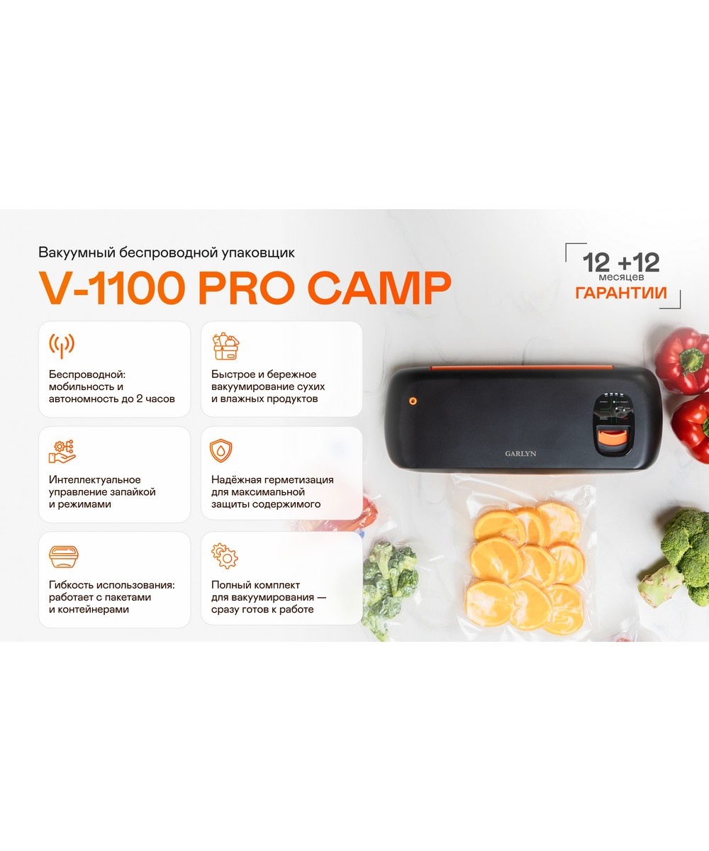 Вакууматор беспроводной GARLYN V-1100 Pro Camp - по цене 5990 руб. в интернет-магазине КотоФото. Подробная информация находится на карточке товара - описание, характеристики, фото. Забрать заказ можно из пунктов самовывоза или оформить доставку на дом. Если останутся вопросы, звоните - 8(800)505-43-75 в Уфе.