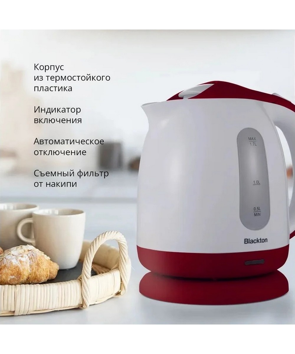Описание товара Чайник электрический Blackton Bt KT1701P Белый-Бордовый