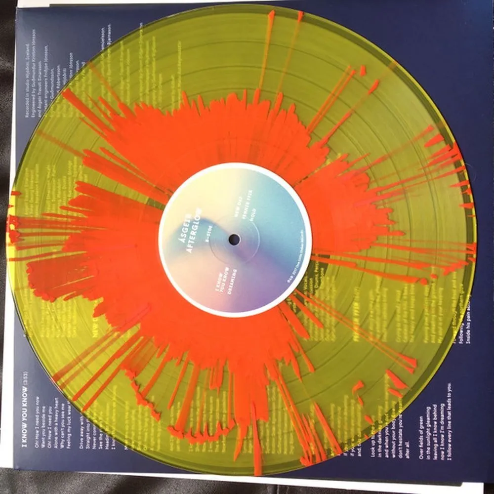 Виниловая пластинка Afterglow исполнителя Asgeir. Пластинка выпущена в специальном издании на жёлтом прозрачном виниле с красными брызгами.