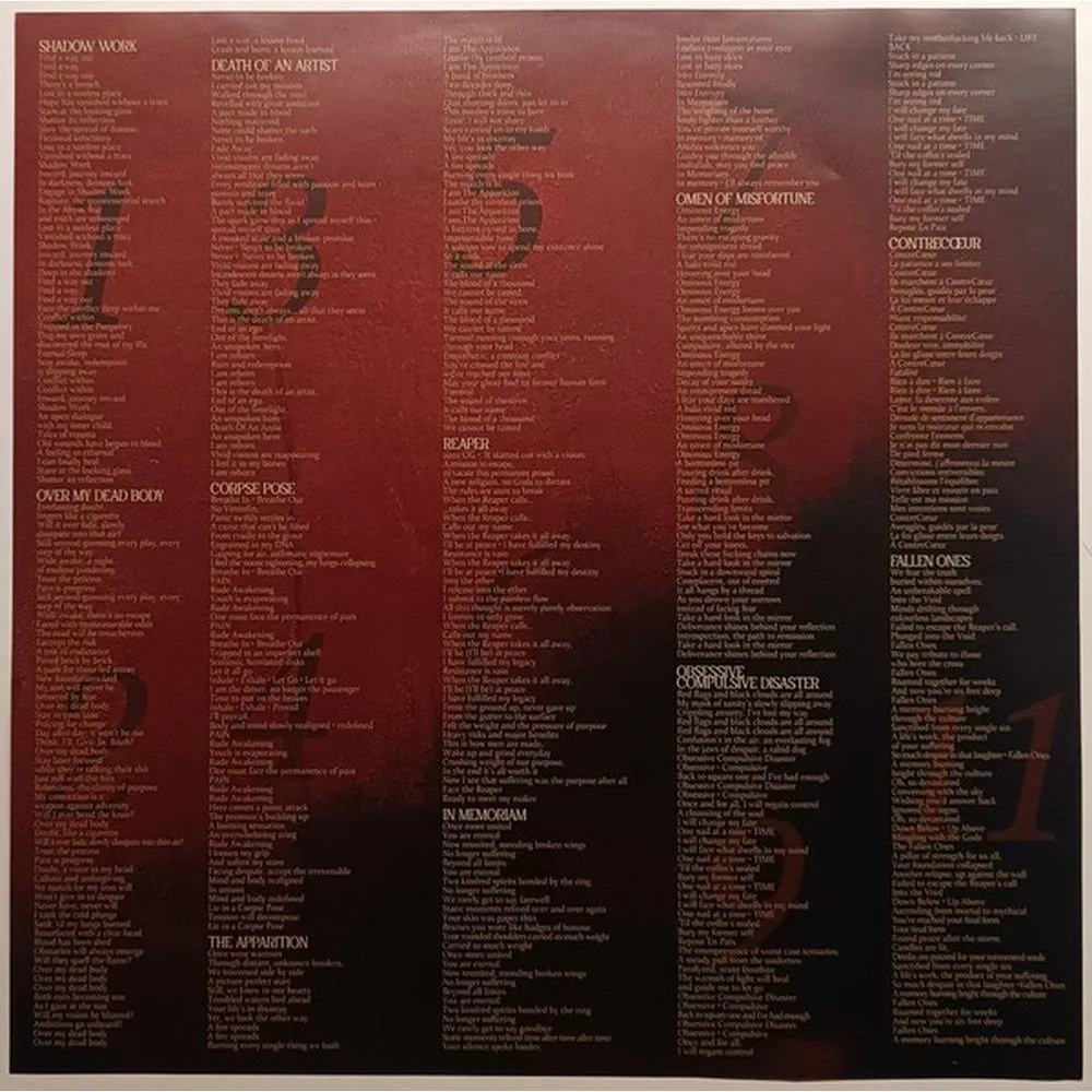 Shadow Work, Over My Dead Body, Death of an Artist, Corpse Pose, The Apparition, Reaper, In Memoriam, Omen of Misfortune, Obsessive Compulsive Disorder, Contrecoeur, Fallen Ones