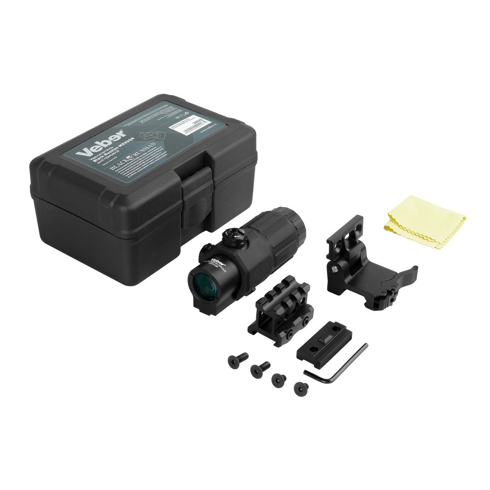 Увеличитель Veber Black Russian MX33QR представляет собой компактный увеличительный прибор без шкалы, который устанавливается за коллиматорным прицелом. При одновременном использовании коллиматорного прицела и магнифера возможен быстрый переход от стрельбы на дальние дистанции к стрельбе на короткие. Для этого достаточно просто откинуть магнифер, не снимая его с оружия. Расположить магнифер можно на любом расстоянии между коллиматором и стрелком (если позволяет длина установочной базы Weaver).