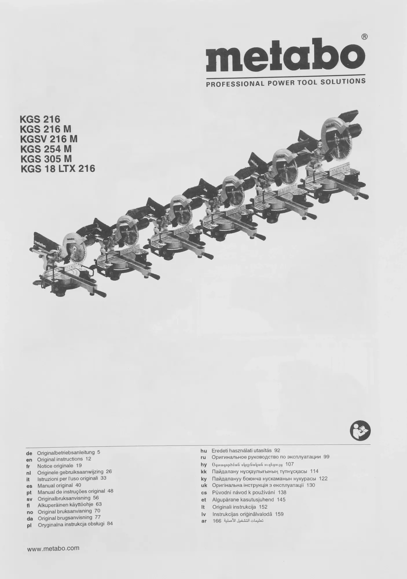 Описание товара Пила торцовочная Metabo KGSV 216 M (619261000)
