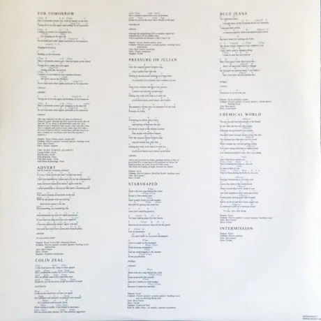For Tomorrow, Advert, Colin Zeal, Pressure On Julian, Star Shaped, Blue Jeans, B7.1Chemical World, B7.2Intermission, Sunday Sunday, Oily Water, Miss America, Villa Rosie, Coping, Turn It Up, D14.1 Resigned, D14.2 Commercial Break