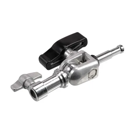 GreenBean PowerArm PA-091 - мощный шарнирный кронштейн, который рассчитан на полезную нагрузку до 9 кг. Позволяет устанавливать осветительное оборудование под различными углами. Нижняя часть кронштейна с 16 мм разъемом (внутри) и 28 мм (снаружи), прикрепленная к шару, наклоняется на ±90° и вращается на 360°, на верхней части кронштейна расположен 16 мм шпигот длиной 70 мм.