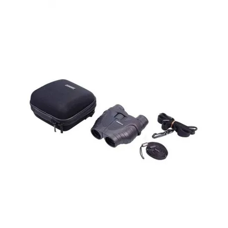 Универсальный бинокль. Где бы ни находился зритель — на «галерке» стадиона или в партере театра — всегда можно подобрать лучшее увеличение из диапазона от 8 до 17-крат для наблюдения за происходящим действием. Бинокль имеет брызгозащищенное исполнение. Благодаря многослойному просветлению оптики, картинка яркая (даже в легких сумерках) и имеет реальную цветопередачу. Изображение резкое, четкое, без искажений по краю поля зрения даже при увеличении 17х. При смене увеличения подфокусировка не требуется. Очень удобная эргономика, рычажок зуммирования приспособлен под управление большим пальцем правой руки. Прибор хорошо защищен от небрежного обращения - благодаря конструкции корпуса, удары в области объективов не приведут к двоению изображения. Жесткий кейс в комплекте. В кейсе предусмотрено место, куда можно положить ключи, небольшой портмоне, сигареты.