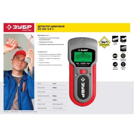 Детектор Зубр 45265 - стоимость товара 1551 руб. в интернет-магазине КотоФото. Характеристики, фото и описание доступны на карточке товара. Купить товар можно на сайте онлайн или заказать по телефону 8(812)426-98-99 в Волгограде, а забрать в пункте самовывоза или оформить доставку на дом.
