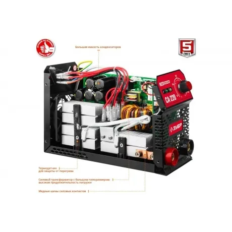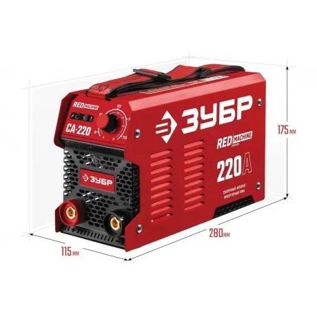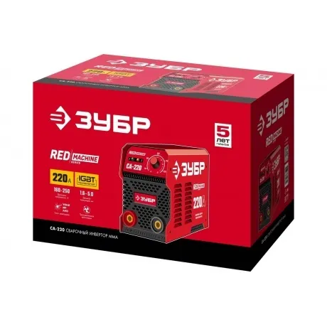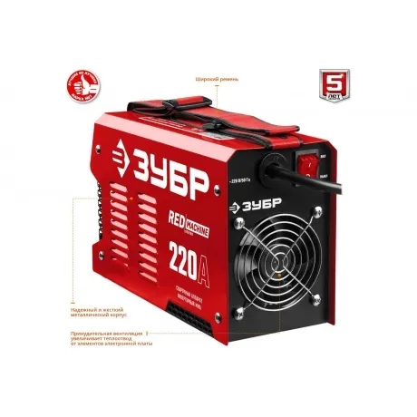 Инверторный сварочный аппарат Зубр 220 А, СА-220 представляет собой надежное оборудования с высокой производительностью. Предназначен для ручной дуговой сварки покрытым электродом. Данная модель отличается большой продолжительностью непрерывной работы на максимальных токах. Мощный вентилятор и многочисленные вентиляционные отверстия на корпусе обеспечивает эффективное охлаждение аппарата и позволяют работать дольше без перегрева. Специальные встроенные функции Горячий старт, Форсаж дуги и Антиприлипание электрода значительно упрощают сварочный процесс и экономят время на настройку инвертора. Плавная регулировка сварочного тока позволяет оптимально подобрать необходимые параметры в зависимости от условий работы.