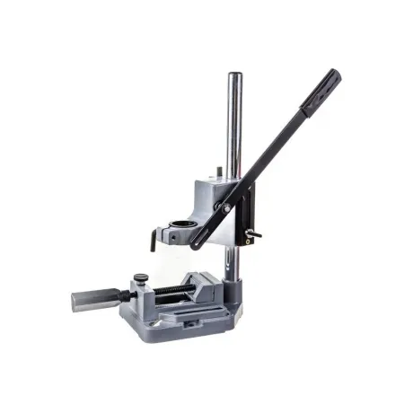 Станок с тисками для дрели STAYER 32240 специальное устройство высотой 400 мм для крепления ручных электродрелей в вертикальном положении. В конструкции также предусмотрены тиски для фиксации различных заготовок. Станок может крепиться к поверхности стола или верстака при помощи четырех болтов. Направляющая и ручки изготовлены из стали, корпус из силумина.