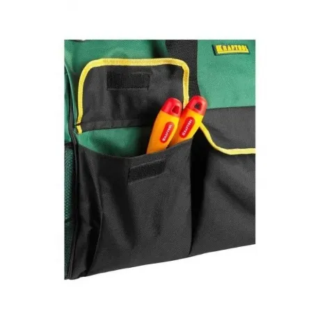 Сумка 38714-24 Kraftool используется для хранения и удобной переноски ручного инструмента. Сумка выполнена из нейлона, а как известно, этот материал не пропускает маслосодержащие вещества. Влагостойкая пропитка предохраняет рабочий инструмент от возможного промокания, что может привести к его поломке. Сумка оснащена множеством карманов, различных по размеру, для максимального удобства при хранении инструмента. С сумкой необходимые приспособления всегда под рукой, и все на своем месте. Удобные ручки - для транспортировки сумки в руке или на плече.