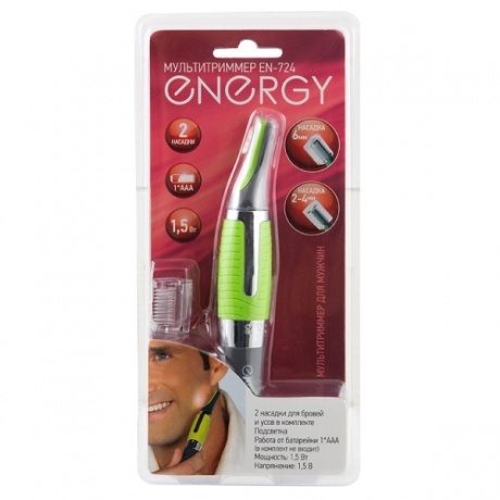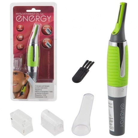 Мультитриммер ENERGY EN-724 для мужчин. Позволяет быстро и безопасно подравнивать волосы в носу и ушах, стричь брови. Не выдергивает волоски. Вытянутая форма удобна в использовании. Есть подсветка, защитный колпачок. щеточка для очистки. Прорезиненное покрытие корпуса Soft Touch. Питание от батарейки 1 х ААА (не входит в комплект).