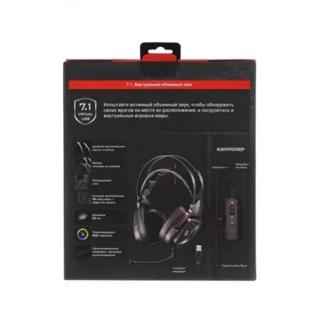 Проводная гарнитура A4Tech Bloody G570 выполнена в черном корпусе с охватывающими амбушюрами и представляет собой игровое устройство с соответствующими функциями. Это поддержка виртуального звука 7.1, что позволяет устройству демонстрировать объемное звучание высокой четкости для более глубокого погружения в виртуальный мир. Вы будете четко слышать шаги противника, каждые шорохи, определяя на их основе местоположение врагов. Наушники A4Tech Bloody G570 оснащены круговой многоцветной подсветкой, что добавляет атмосферности игровому процессу. На корпусе зафиксирован микрофон с подвижным креплением: его можно убрать в сторону, когда вы не планируете общение. Микрофон обладает функцией шумоподавления, уменьшая нежелательные фоновые шумы. Устройство поддерживает воспроизведение в диапазоне 20-20000 Гц. Для управления наушниками используется удобный контроллер, который содержит колесико для управления громкостью, а также кнопки для активации микрофона и подсветки. Подключить гарнитуру к устройству можно при помощи кабеля длиной 2 м. Удобство посадки обеспечивают эргономичные большие 3D-амбушюры, изготовленные из протеиновой кожи.