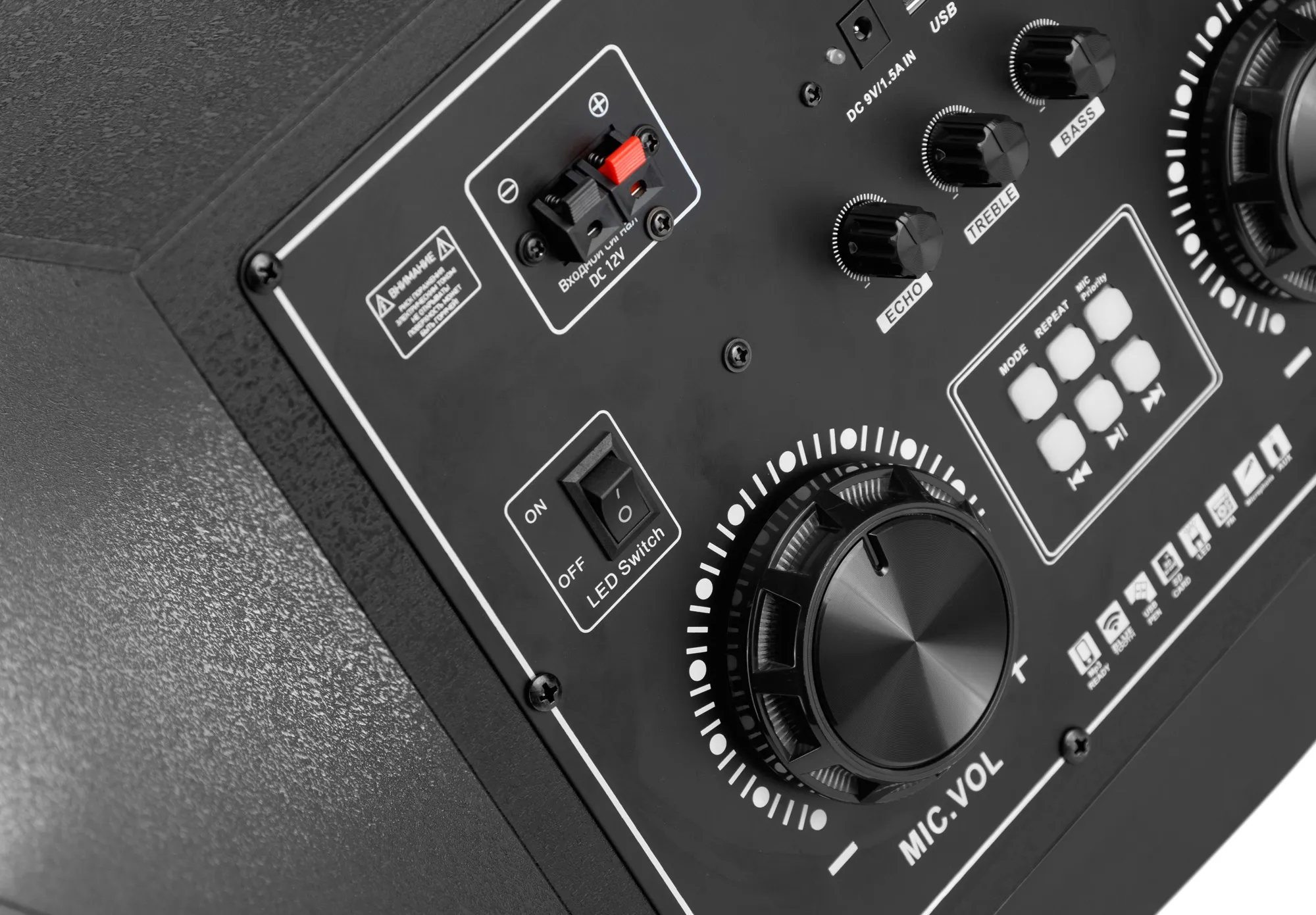 Digma MS-14- мини-система мощностью 600 Вт, с возможностью воспроизведения музыкальных композиций с microSD карт и USB носителей, а так же по протоколу Bluetooth версии 5.0. Система оснащена встроенным FM-тюнером для прослушивания радио. Время работы устройства от встроенного аккумулятора емкостью 2400 мАч составляет 6 часов, также предусмотрена возможность работы колонки от внешнего источника питания Акустическая система оснащена яркой светодиодной подсветкой. Предусмотрена возможность управления с пульта ДУ. Все органы управления удобно расположены на верхней панели под ручкой для переноски.