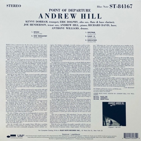 Пианист и композитор Эндрю Хилл дебютировал на Blue Note с творческим взрывом, который за 5 месяцев выпустил 4 классических альбома, включая его шедевр 1964 года Точка отправления. Его экстраординарные композиции волнующе исполняются разнообразным ансамблем с участием Кенни Дорэма, Джо Хендерсона, Эрика Долфи, Ричарда Дэвиса и Тони Уильямса. Виниловая серия Blue Note Classic полностью аналоговая, мастеринг выполнен Кевином Греем с оригинальных мастер-лент и отпечатан на 180-граммовом виниле в оптимальном режиме.