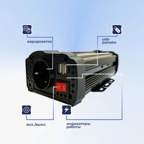 Инвертор автомобильный Artway AI-3001 - это устройство, которое преобразует напряжение постоянного тока от автомобильной батареи 12В в переменный ток 220В для питания различных электронных устройств и бытовой техники. Модель AI-3001 имеет пиковую мощность 600Вт и непрерывную мощность 300Вт, что позволяет использовать его для питания и зарядки различных устройств, таких как смартфоны планшеты ноутбуки, освещение и другие бытовые приборы. Инвертор обладает высокой эффективностью (КПД более 90%) и оснащен алюминиевым радиатором и вентилятором для эффективного охлаждения. Система защиты от понижения входного напряжения, перегрузки, перегрева и короткого замыкания обеспечивает безопасность использования устройства. Также преобразователь напряжения Artway имеет встроенный USB-порт для зарядки мобильных устройств. Компактные габариты и малый вес делают устройство удобным для переноски и использования в поездках на автомобиле. Строго рекомендуется при использовании автомобильного инвертора следить за нагрузкой, чтобы не превышать его непрерывную мощность, а также не забывать о безопасности и правильных правилах использования.