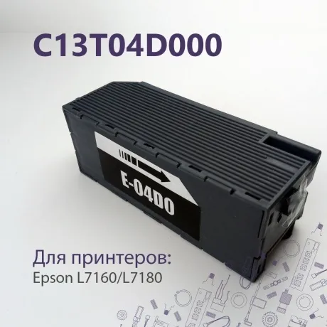 Емкость для отработанных чернил Epson C13T04D000 – оригинальный аксессуар Epson. Изделие предназначено для комплектации струйных многофункциональных устройств. В список совместимых МФУ входят 2 модели – Epson L7160 и Epson L7180. Емкость для отработанных чернил Epson C13T04D000 поставляется без чернил. Материал изготовления – пластик безупречного качества. Емкость располагает ручкой на лицевой панели, обеспечивающей простоту установки и извлечения из устройства. Форма корпуса аксессуара исключает ошибки в процессе установки.