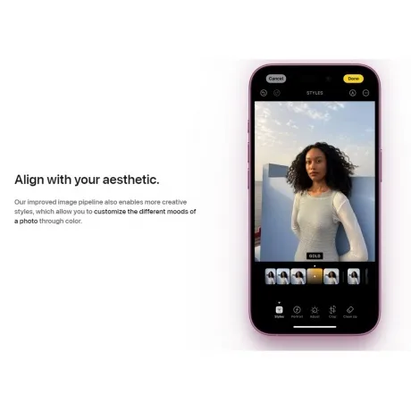 В Apple iPhone 16 установлен экран OLED Super Retina XDR с диагональю 6.1 дюйма с разрешением 2556х1179 пикселей. Дисплей выводит яркую картинку и видео без задержек и мерцаний, обеспечивает комфорт просмотра контента под углом.
