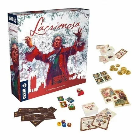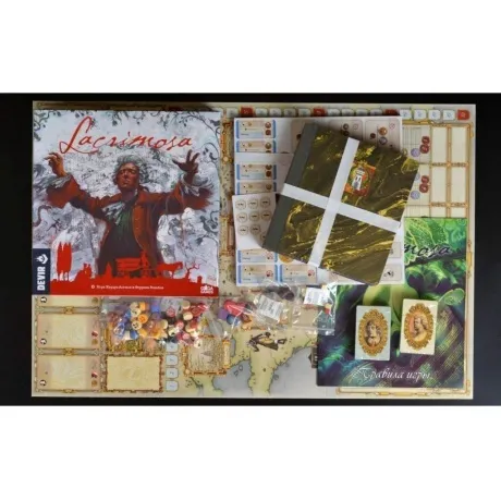Лакримоза это удивительной красоты стратегическая игра, которая позволит вам вжиться в роль творца. Великий композитор Вольфганг Амадей Моцарт ушел из жизни, оставив свое последнее произведение, Реквием, незавершенным. Вам, как его покровителям, предстоит завершить его величественное творение и подвести итоги жизни гениального музыканта. Вы сыграете череду раундов, каждый из которых будет означать тот или иной период жизни Моцарта. Вы будете вспоминать важные события, добавлять их в вашу колоду карт, которые представляют разные периоды жизни композитора. Вам также предстоит напоминать себе и остальным о поездка по городам и дворам Европы вместе с Моцартом, заказывать музыкальные произведения композитора для последующего исполнения или продажи, ну и самое главное – помогать безутешной вдове композитора, Констанции, завершить легендарный Реквием. Каждая сыгранная карта может быть использована для выполнения действия или для получения очков истории, которые понадобятся вам в следующем раунде. Таким образом, вам предстоит тщательно планировать свои шаги – но ведь на то вы и благородный меценат, верноx Вы можете получать поддержку от других известных композиторов или друзей Моцарта, таких как Йозеф Эйдлер, Антон Штадлер, Франц Зюсмайер или Франц Фрейштадлер, которые с удовольствием присоединятся к завершению музыкального произведения. Восхитительное оформление игры и высокое качество компонентов приятно удивят даже самых искушенных настольщиков, а насыщенные партии заставят возвращаться к Лакримозе снова и снова. Так кто же из вас сможет завершить Реквиемx