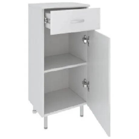 Полупенал RUNO 30 правый 00000000110 функциональное решение для недорогого и современного оснащения ванной комнаты. Шкаф выполнен в белом цвете, идеально впишется в любой интерьер ванной комнаты. Тумба имеет одну распашную дверцу и один выдвижной ящик на шариковых направляющих. В нижнем отделении одна встроенная полка. В комплекте идут петли со встроенным доводчиком, 2 ручки, 2 хромированные и 2 пластиковые ножки. Мебель для ванной RUNO красота и практичность в мелочах!