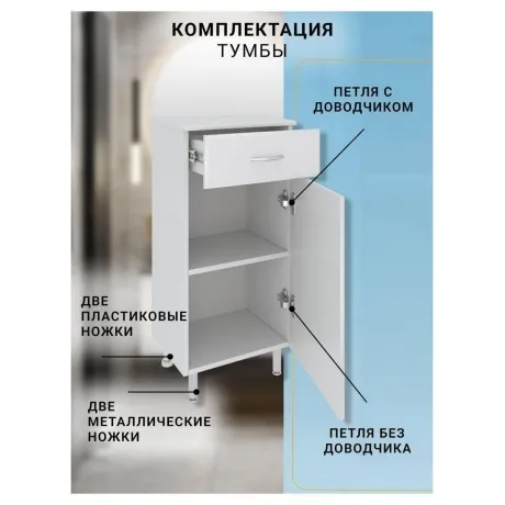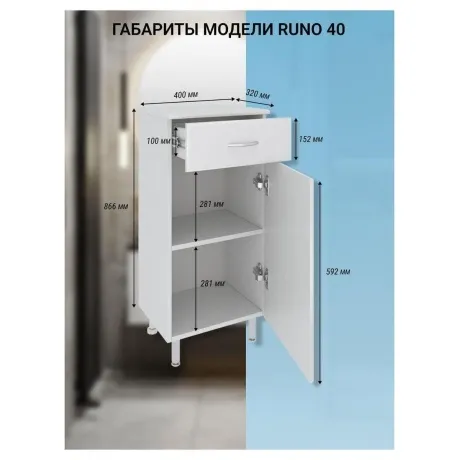 Полупенал RUNO 40 правый 00000000117 функциональное решение для недорогого и современного оснащения ванной комнаты. Шкаф выполнен в белом цвете, идеально впишется в любой интерьер ванной комнаты. Тумба имеет одну распашную дверцу и один выдвижной ящик на шариковых направляющих. В нижнем отделении одна встроенная полка. В комплекте идут петли со встроенным доводчиком, 2 ручки, 2 хромированные и 2 пластиковые ножки. Мебель для ванной RUNO красота и практичность в мелочах!