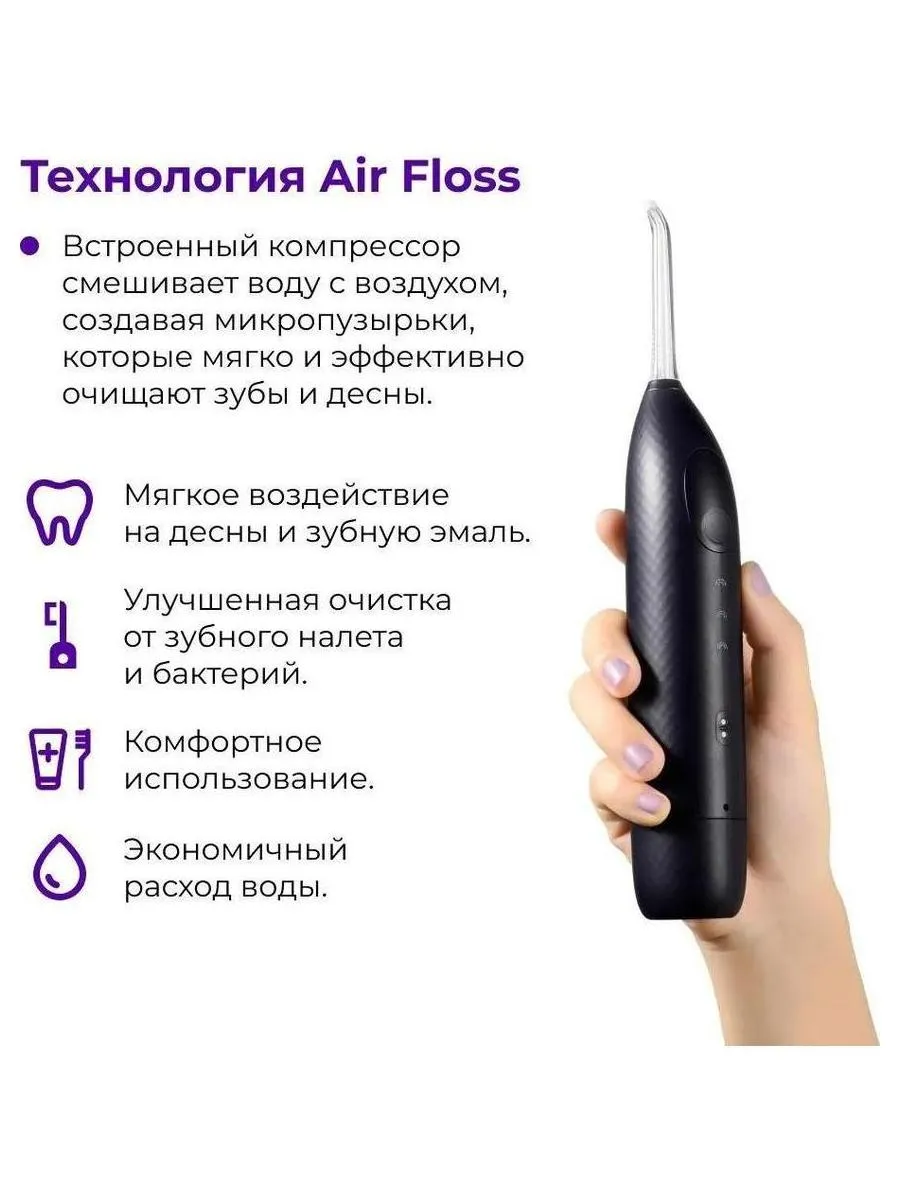 Xiaomi Oclean W1 Purple – устройство эффективно устраняет грязь между зубами под большим давлением, не травмируя десны, как, например, зубная нить. Кроме того, во время работы ирригатор массажирует десны, благодаря чему они укрепляются, лучше противостоят воспалениям и другим болезням. Инновационная компактная конструкция ирригатора делает его идеальным помощником в гигиене полости рта. С носиком под уклоном 45 градусов удобно работать, а сама насадка вращается на 360 градусов для максимальной простоты использования. При давлении 140 кПа длительность цикла разбрызгивания - 0.14 секунд. Наконечник из пищевого силикона нежно обходится с деснами во время работы, не раздражая их. Резервуара емкостью 30 мл хватит на полный цикл очистки всех зубов. Аккумулятор емкостью 1200 мАч позволяет ирригатору работать 30 дней на одном заряде. Полная зарядка занимает более 3 часов. Подключите ирригатор с помощью Bluetooth к мобильному приложению, в котором можно настроить больше опций и получить рекомендации по уходу за полостью рта.