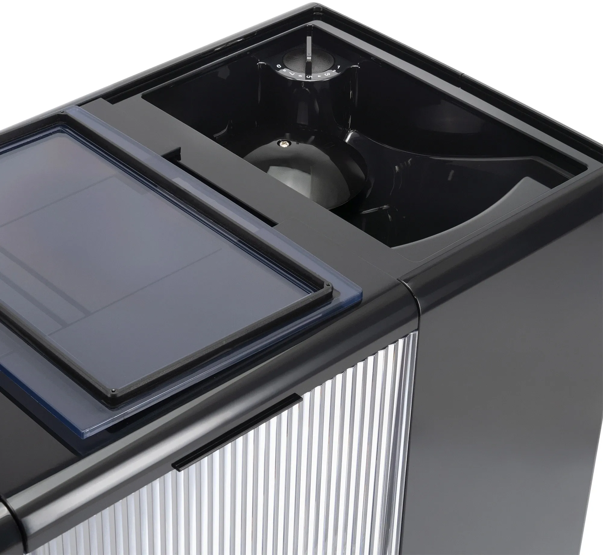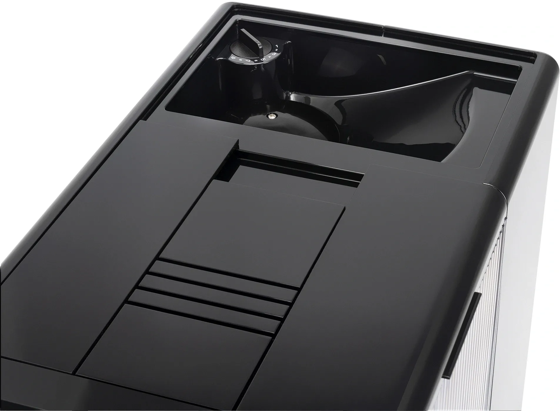 Количество молотого кофе можно регулировать самостоятельно: просто поверните ручку, фиксируя ее на определенном показателе от 2 до 12. Прибор оборудован съемными прозрачными контейнерами для зерен емкостью 250 г и для молотого кофе объемом 125 г. Особому удобству в использовании прибора способствуют прорезиненные ножки, которые не дадут
