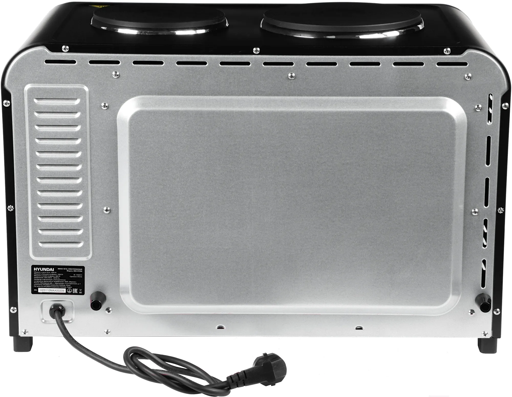 Модель Hyundai MIO-HY098 сочетает в себе функциональность электроплитки, гриля, электрической духовки и тостера. Пользуйтесь одновременно и двумя электрическими конфорками, и мини-печью, чтобы сделать сразу несколько блюд для всей семьи. Например, варите спагетти и готовьте ароматный соус, а в печи запекайте курицу-гриль. Модель быстро прогревается до нужной температуры благодаря высокой мощности 1600 Вт. Объем печи – 42 л. В ней можно запечь крупный кусок мяса в фольге или сделать большую пиццу