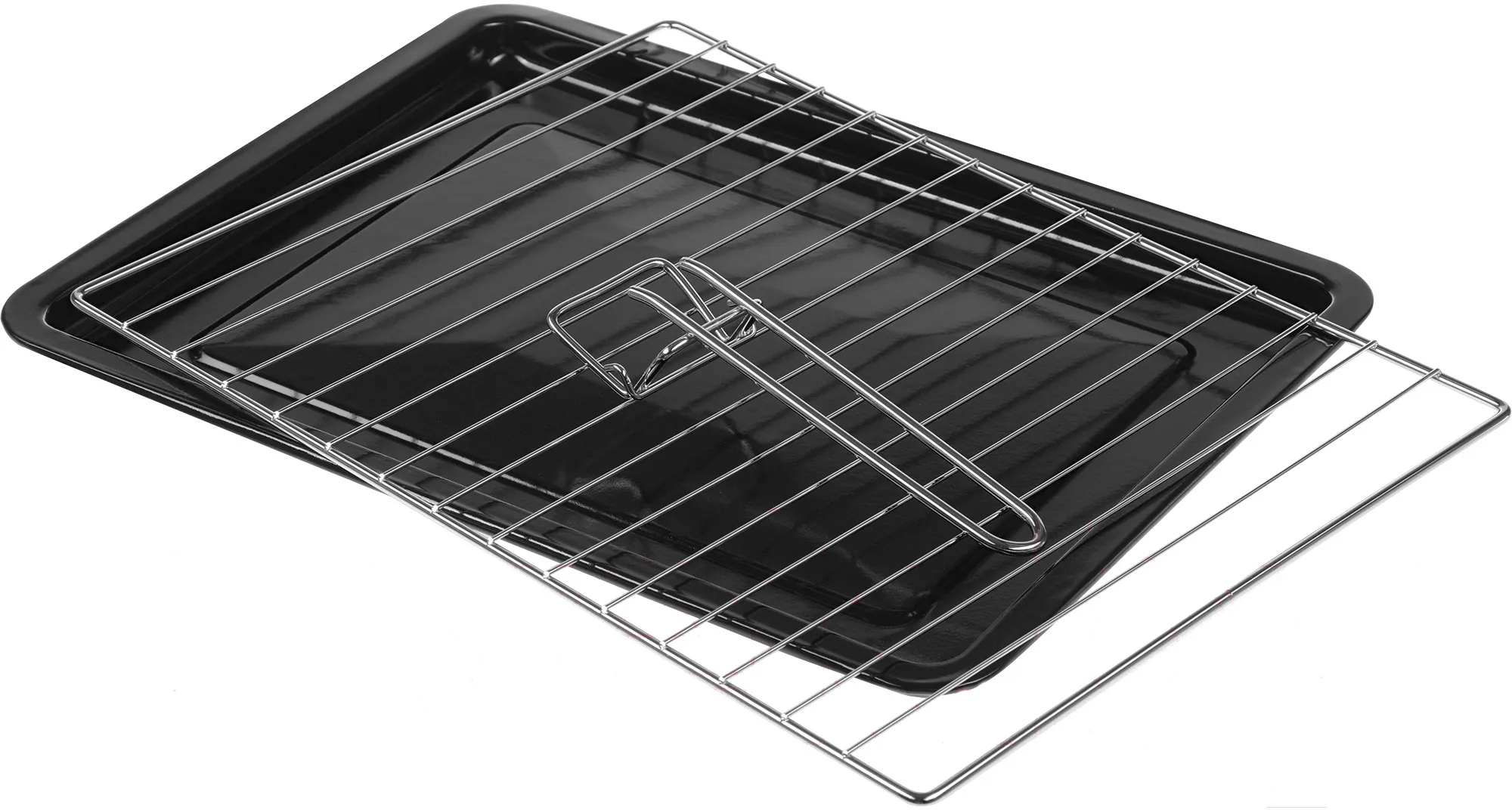 Все необходимые аксессуары. В комплекте идут решетка-гриль, эмалированный прямоугольный противень, ухват, поддон для крошек и масла. Готовьте любимые блюда с комфортом.