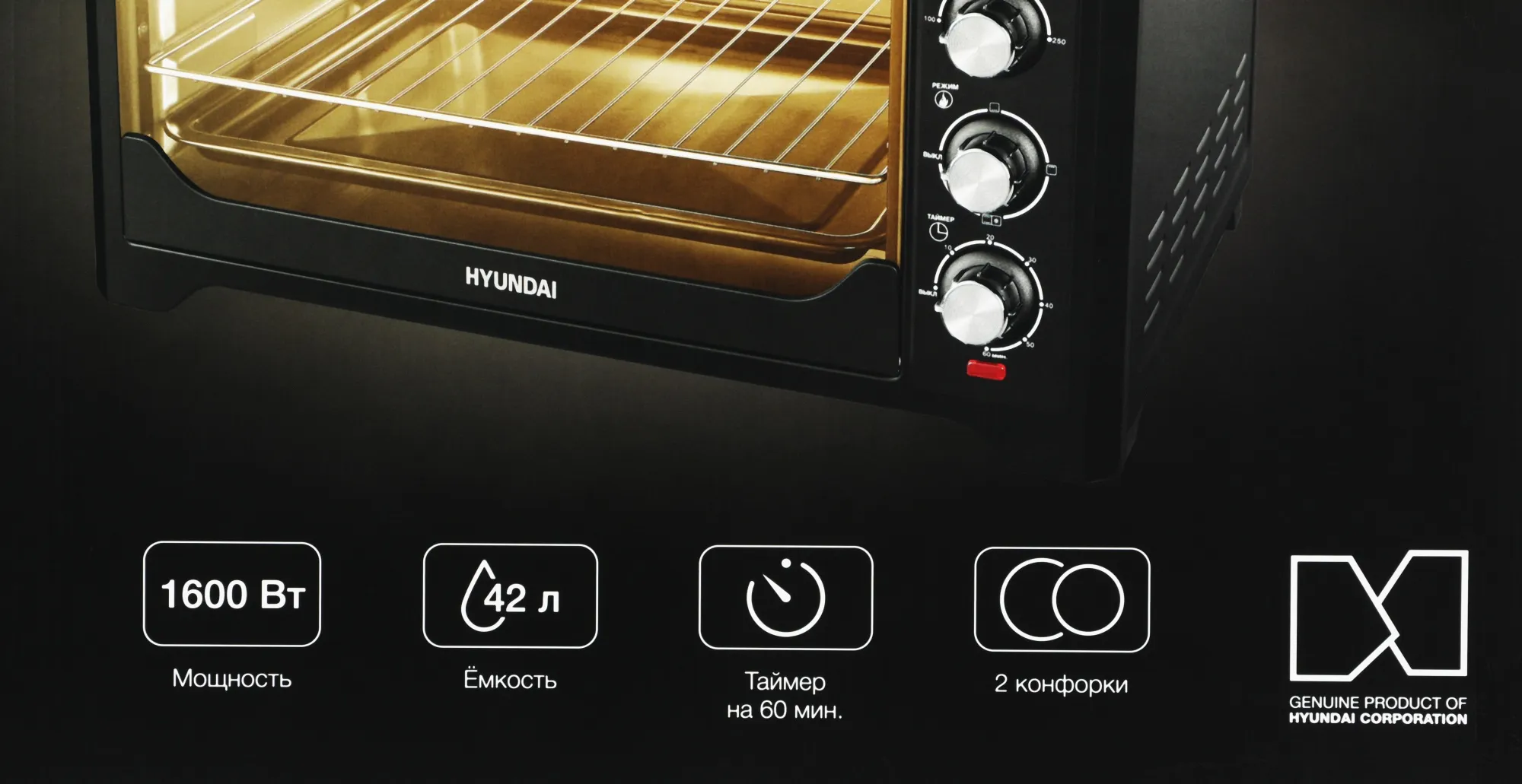 Отзывы о товаре Мини-печь Hyundai MIO-HY098 42л. 1600Вт черный