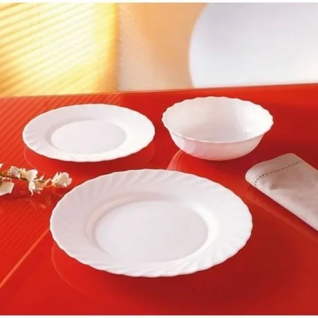 Тарелка обеденная белая из серии Luminarc Trianon. Тарелка диаметром 27 см выполнена из ударопрочного стекла, устойчива к резким перепадам температуры. Пригодна для использования в посудомоечной машине и СВЧ. Тарелка Люминарк Трианон предназначена для сервировки вторых блюд, а также её можно использовать как подстановочную под тарелку для супа. Классическая форма и всегда актуальный дизайн позволит осуществить сервировку как повседневного, так и праздничного стола.