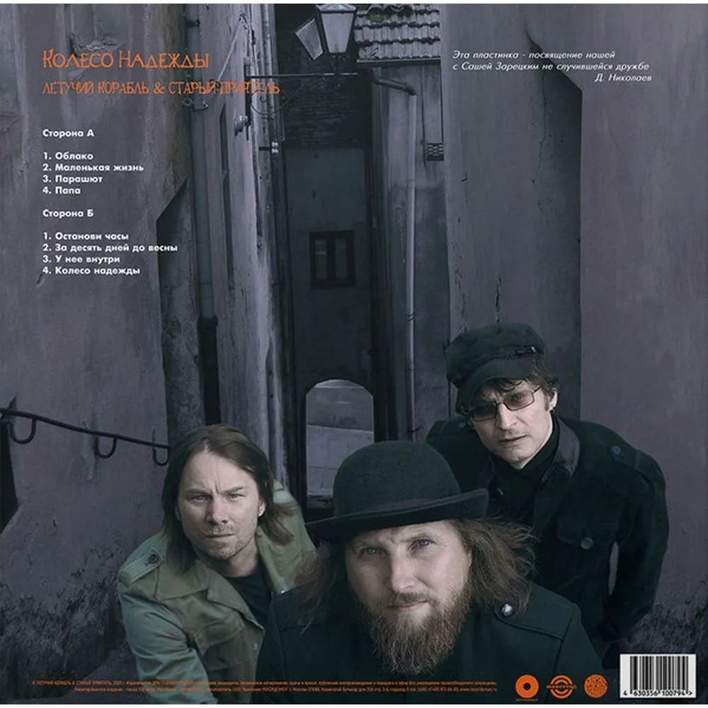 "Колесо Надежды" - совместный студийный альбом музыкантов из групп Летучий корабль и Старый приятель, выпущенный в 2025 году. Лимитированное издание представлено на виниле в черно-сером мраморном цвете. Тираж 100 экземпляров. Летучий Корабль - музыкальный проект Дмитрия Николаева. Группа Летучий Корабль не имеет никакого отношения к известному мультфильму, но своим названием обязана одноименной сказке, суть которой вполне созвучна идейной направленности коллектива - помогать другим, раскрывать таланты и собирать друзей на пути следования к возвышенной и благородной цели. Старый приятель - российская рок-группа, созданная в Москве в 1995 году. Первого успеха музыканты добились на международном фестивале "Битлз — навсегда" в городе Днепропетровске. Песни с первого альбома "Московская любовь", "Новый день календаря", "Не плачь" стали хитами радио-эфира. С 1996 по 2020 год музыканты выпустили 12 альбомов, включая сборник популярных песен "Новый день календаря. The Best". Группа Старый приятель исполняет софт-рок в духе 60-х и пользуется популярностью как у молодой аудитории, так и у старшего поколения, у всех, кто любит добротную качественную музыку.