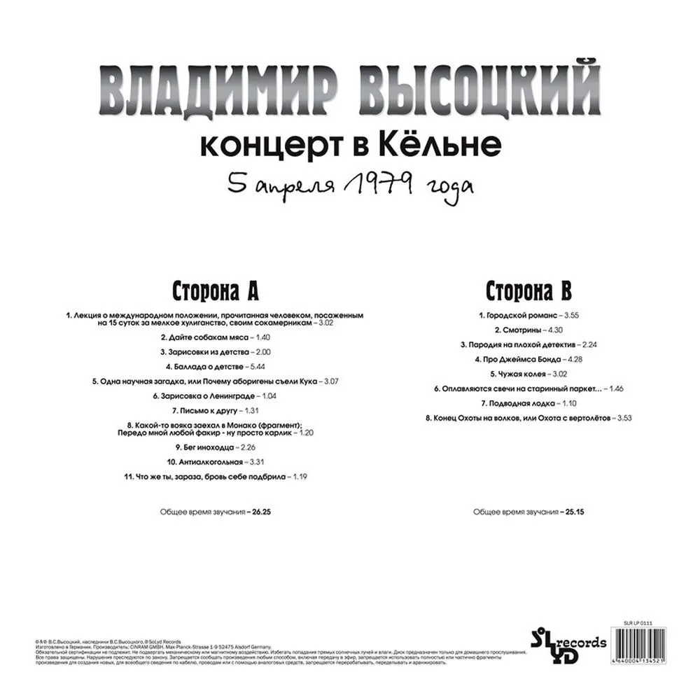 Владимир Высоцкий - Концерт В Кёльне (4640004134521) виниловая пластинка купить виниловую пластинку в Волгограде, цены на винил