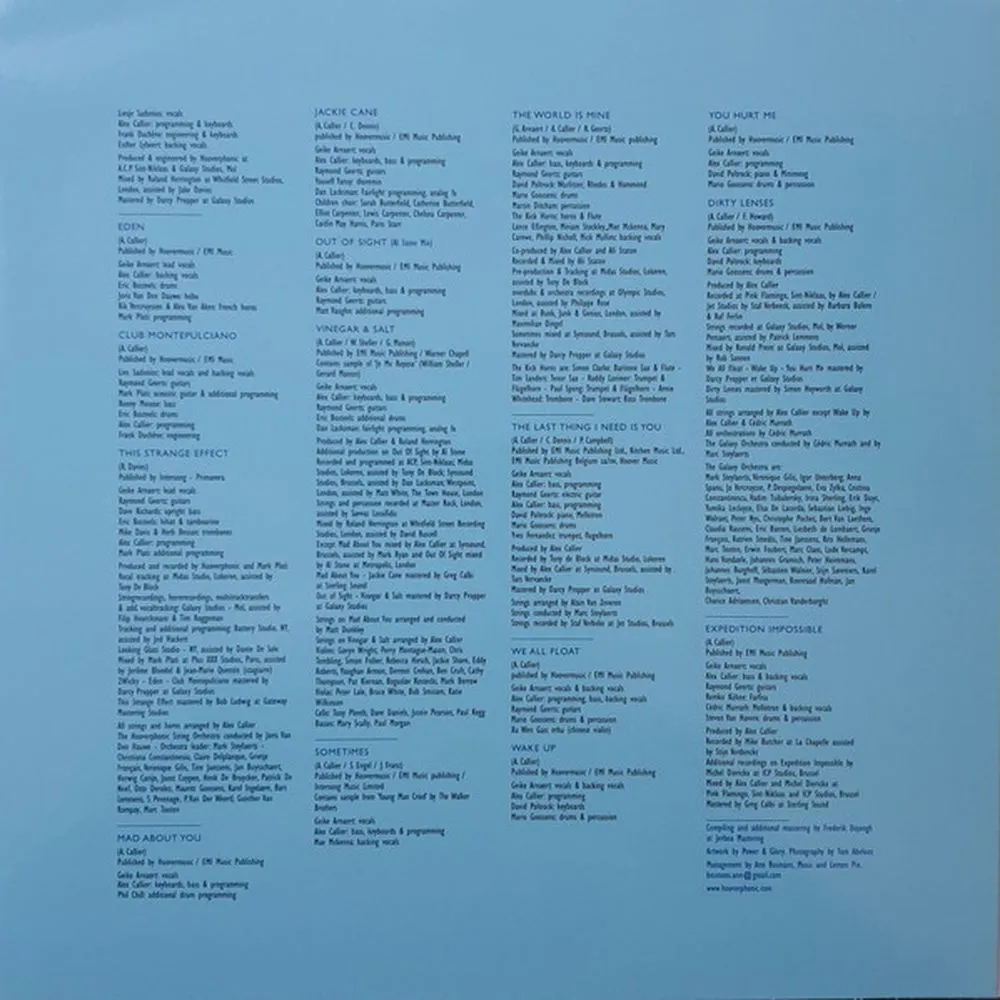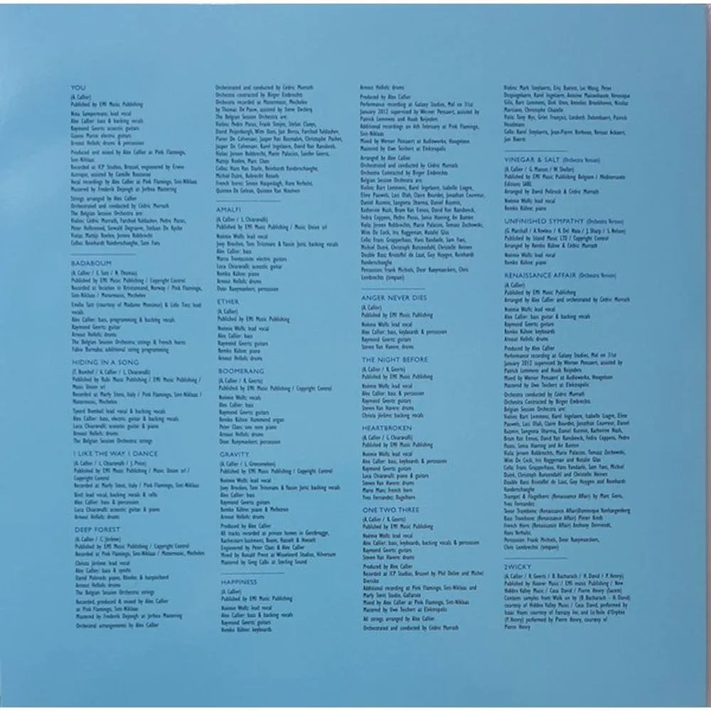 You, Badaboum, Hiding In A Song, I Like The Way I Dance, Deep Forest, Amalfi, Ether, Boomerang, Gravity, Happiness, Anger Never Dies, The Night Before, Heartbroken, One Two Three, Vinegar & Salt (Orchestra Version), Unfinished Sympathy (Orchestra Version), Renaissance Affair (Orchestra Version), 2 Wicky, Eden, Club Montepulciano, This Stange Effect, Mad About You, Jackie Cane, Out Of Sight, Vinegar & Salt, Sometimes, The World Is Mine, The Last Thing I Need is You, We All Float, Wake Up, You Hur