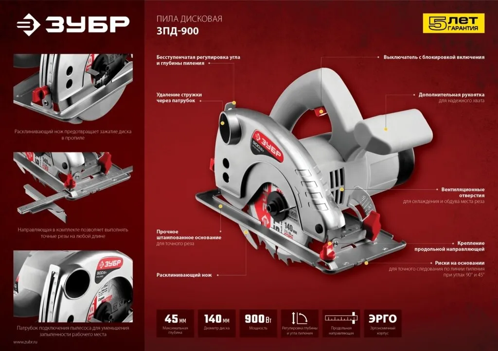 Отзывы о товаре Пила дисковая Зубр ЗПД-900