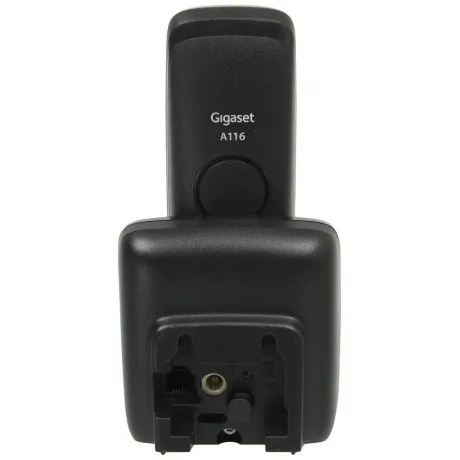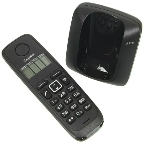 Gigaset A116 чёрный. Радиотелефон стандарта DECT черного цвета, обладающий необходимым набором базовых функций и выполненный с немецким качеством. Основные характеристики: определитель номера, телефонная книга, 10 мелодий звонка, часы, будильник, дисплей с без подсветки, возможность установки на стене.
