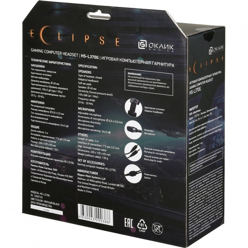 Наушники Oklick HS-L370G ECLIPSE черный в Воронеже