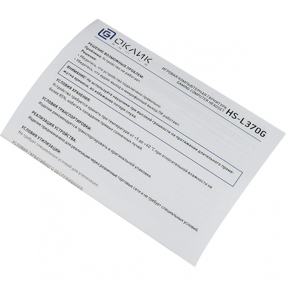 Oklick HS-L370G - компьютерная игровая гарнитура с удобными регулируемым оголовьем и охватывающими мягкими амбушюрами.