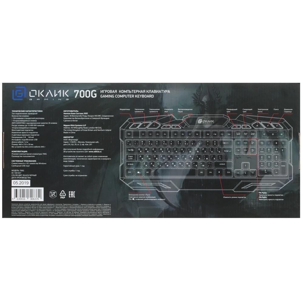 Клавиатура Oklick представляет собой сочетание современного дизайна и функциональности, идеально подходящее для повседневного использования с ПК.
