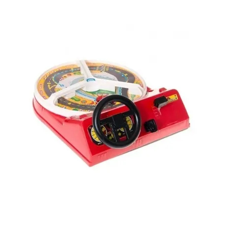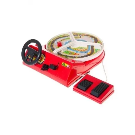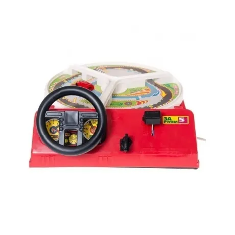 Игра с педальным приводом на котором расположен тормоз и газ, заводится кнопкой ПУСК, с механическим переключением скоростей (3 скорости). Движение автомобиля по иллюстрированному кругу с разметками направления пути. Игрушка укомплектована липкой аппликацией. Питание игры осуществляется от двух или трёх последовательно соединённых элементов типа «C» (R14). Элементы питания в комплект игрушки не входят.