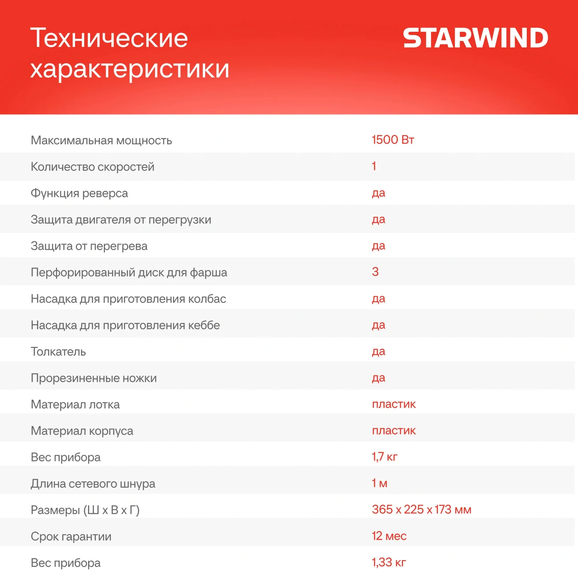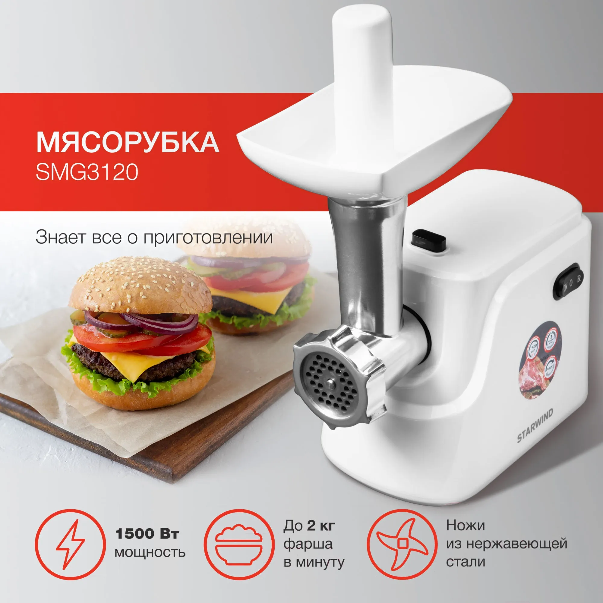 Описание товара Мясорубка Starwind SMG3120 1500Вт белый